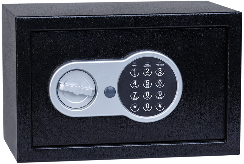 - Сейф обладнаний електронним кодовим замком з можливістю відмикання ключем аварійного розкриття в разі втрати коду або в разі розряджання елементів живлення замка.